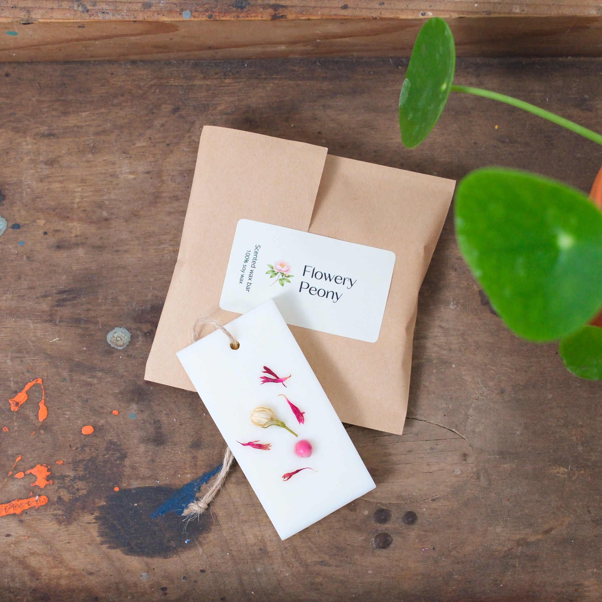 Beschrijving Elk waxmelts tablet wordt zorgvuldig verpakt in zijdepapier en vervolgens in een natuurlijk & stijlvol kraftzakje.