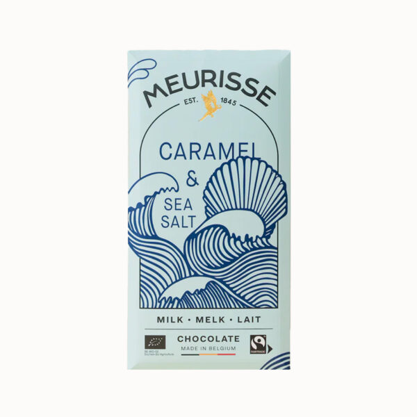 Karamel zeezout chocolade van Meurisse, De brutale karamel en het zilte zeezout komen samen in de fluweelzachte melkchocolade. Geweldige smaken & texturen.