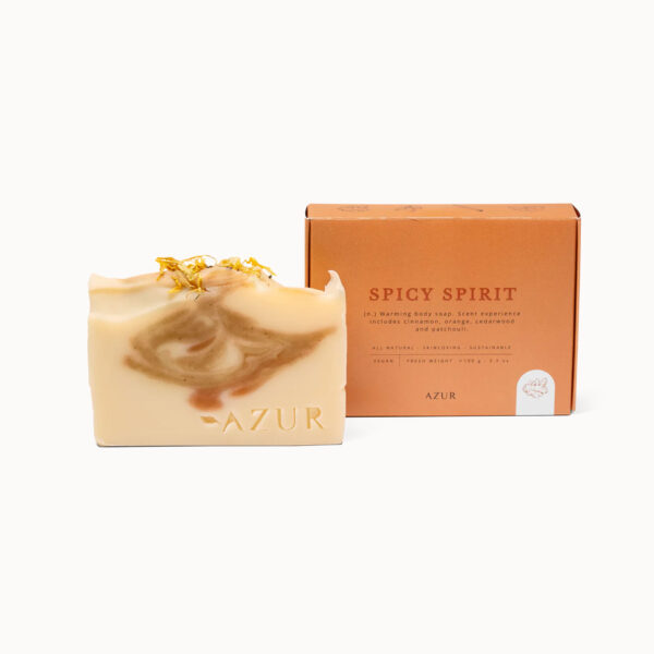 Ontdek de kracht van kruiden met Spicy Spirit, een verwarmende kruiden zeep boordevol kurkuma en rode klei. Deze intens verzorgende natuurlijke zeep combineert de zuiverende werking van kurkuma met de diepreinigende eigenschappen van klei – perfect voor een energieke start of ontspannende afsluiting van je dag.