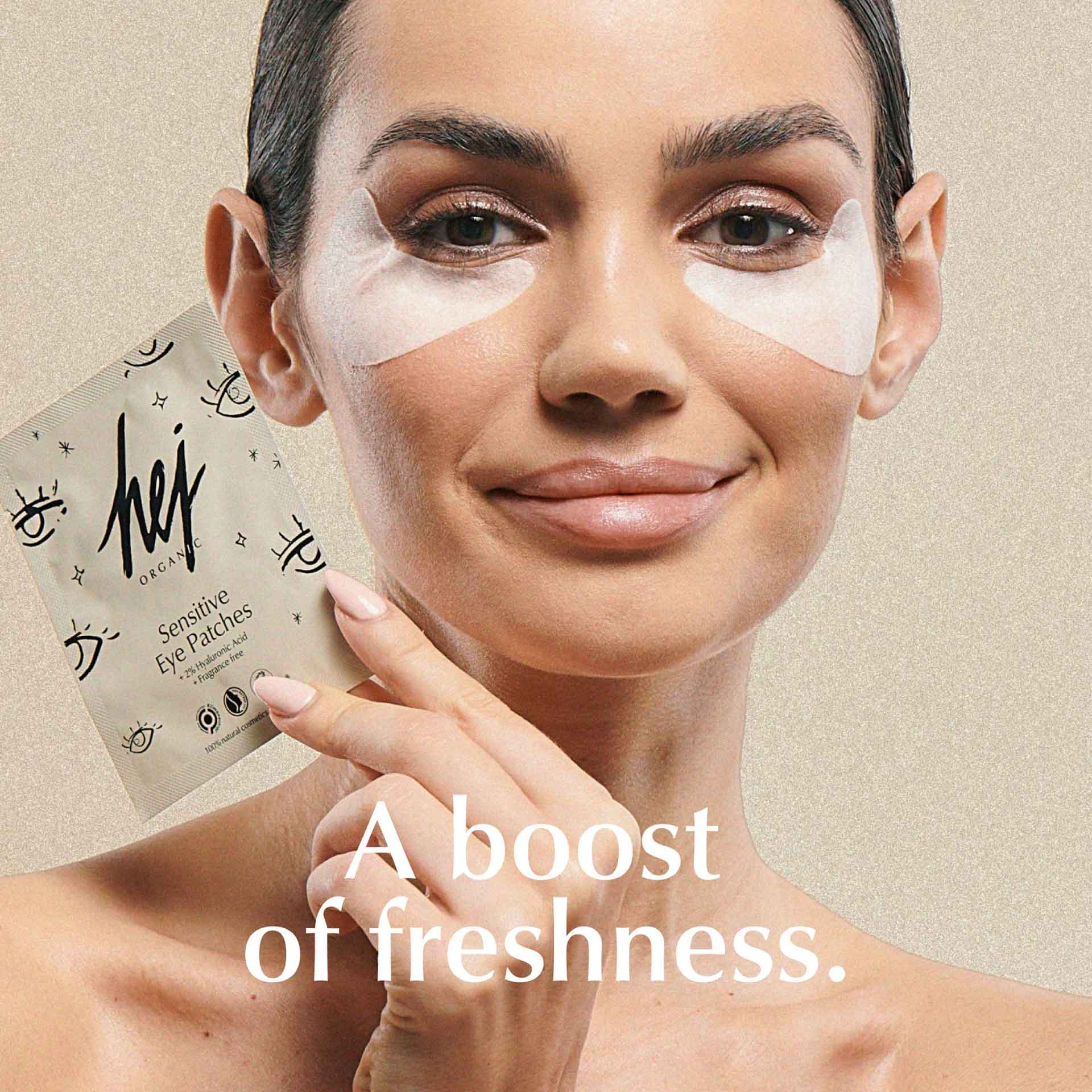 Sensitive Eye Patch, de ideale oplossing voor de gevoelige huid. Een milde formule met druivenpit en hennep olie verzacht en verzorgt de tere huidjes rond de ogen.