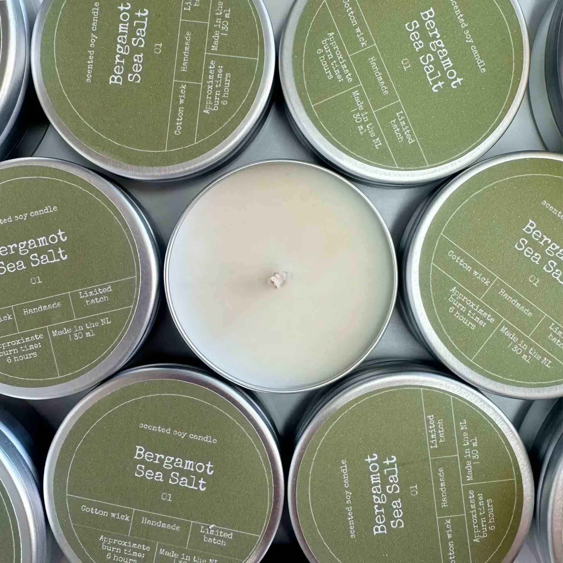 Soja geurkaars Bergamot & Zeezout met een sprankelende mix van frisse citrus en een vleugje zilte zeelucht. Een verkwikkende geur die je huis direct een lichte, energieke sfeer geeft – perfect om jezelf even op te frissen of weg te dromen naar de kust.
