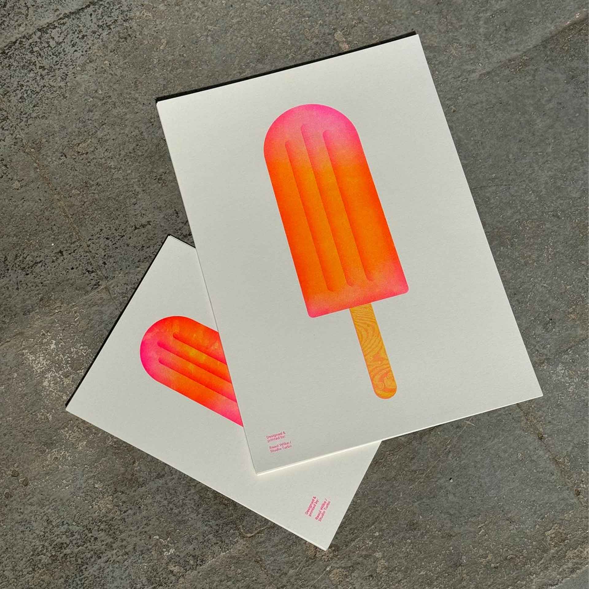 Een risoprint Studio Turbo poster met een kleurrijk ijsje! Deze Neon Popslice is een echte eyecatcher voor aan de muur, de kleuren zijn in het echt nog feller en mooier dan op je beeldscherm.