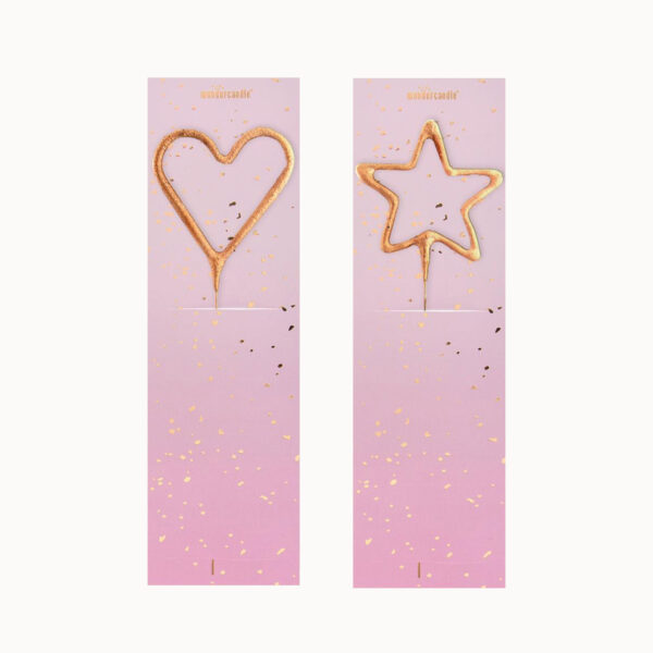 Go sparkle! ★ Met deze roségouden Wondercandle vuurwerk sterretjes in ster- of hartvorm maak je elk feestje bijzonder. Vier het leven, herinner en proost op een Happy Day!